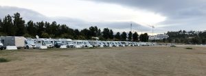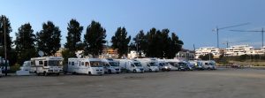 Der Stellplatz ist heute mehr als voll. Bis jetzt kam die Polizei noch nie um Wohnmobile weg zu schicken.
