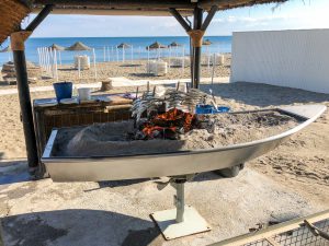 Christa geht in die Kirche die dort steht. Dann schlendern wir zurück und suchen ein Restaurant. Christa sieht einen Italiener der ihr gefällt. Wir treten ein – und sind die einzigen Gäste. Ist halt keine Saison. Wir machen unsere Bestellung. Der Küchenchef betritt das Lokal und wirft die Küche an. Es kommen noch 2 Gäste. Und dann noch 2. Und plötzlich ist der Laden voll. Wir waren um 13.30 Uhr einfach zu früh dran.